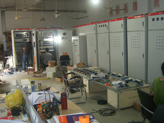 下圖為公司員工正在加緊生產(chǎn)為該項目配套的電控柜。