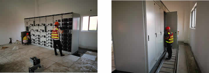 我司員工將電控柜運(yùn)至酒廠配電房整齊就位