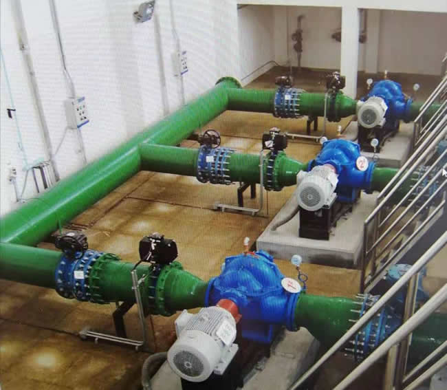 圖為由我司負(fù)責(zé)安裝的常熟某水廠沉降式泵房一角