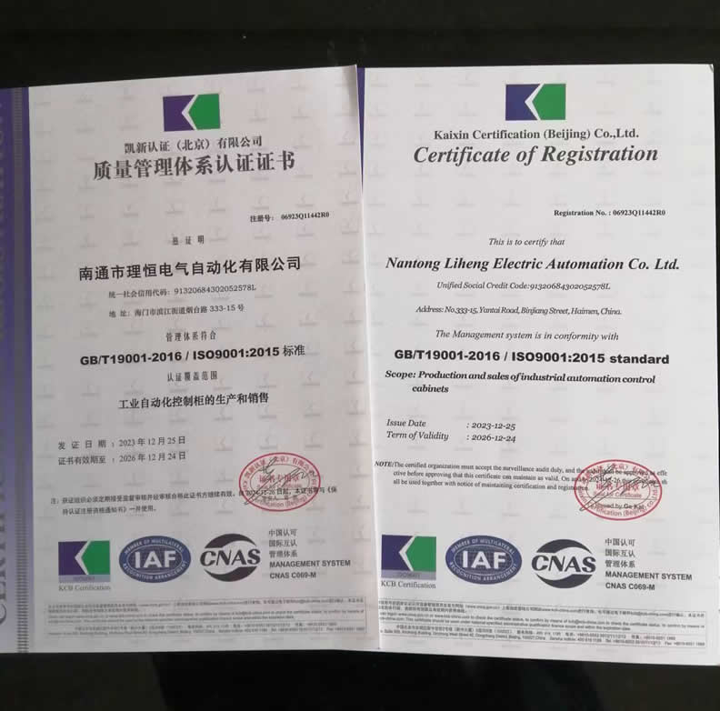 前不久,經(jīng)中國質(zhì)量認(rèn)證中心有關(guān)專家的現(xiàn)場檢查復(fù)核,認(rèn)定我司工業(yè)自動化控制柜的生產(chǎn)和銷售體系符合GB/T19001-2016/ISO9001:2015標(biāo)準(zhǔn),并給我司頒發(fā)了認(rèn)證證書。